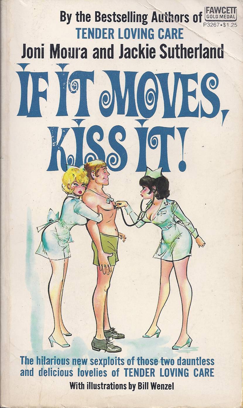 Fawcett Gold Medal P3267 – IF IT MOVES, KISS IT! by Joni Moura and Joni Sutherland, PBO 1973.