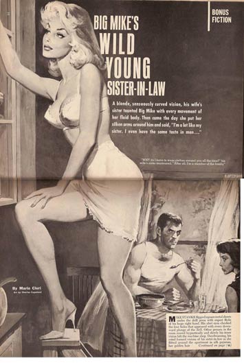 August 1964 - "Big Mike's Wild Young Sister-in-law" by Mario Cleri (Mario Puzo). b&w> |
