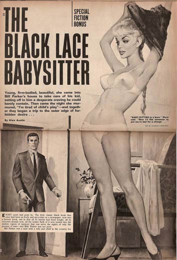 December 1966 - "The Black Lace Babysitter". Reused in ACTION FOR MEN March 1969, where the man in the doorway is in a private's uniform. |