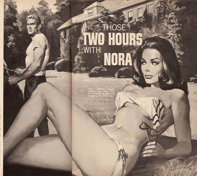 February 1966 - "Those Two Hours With Nora" - reprinted in MEN ANNUAL #2, 1968 and TRUE ACTION March 1969. |