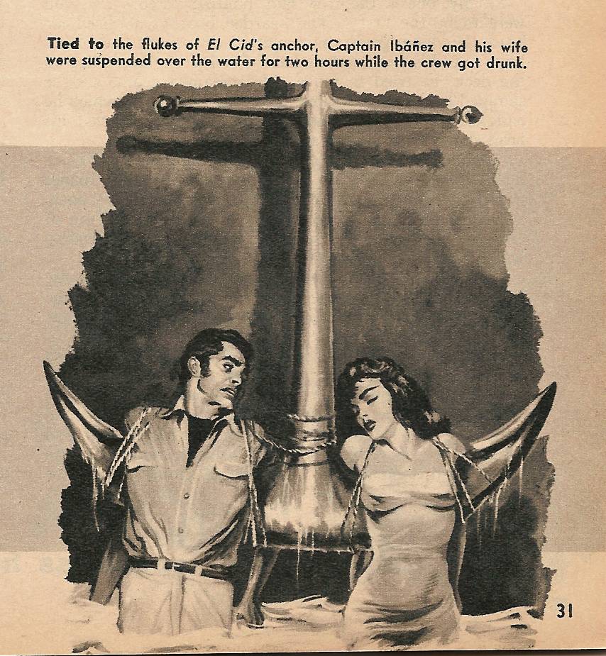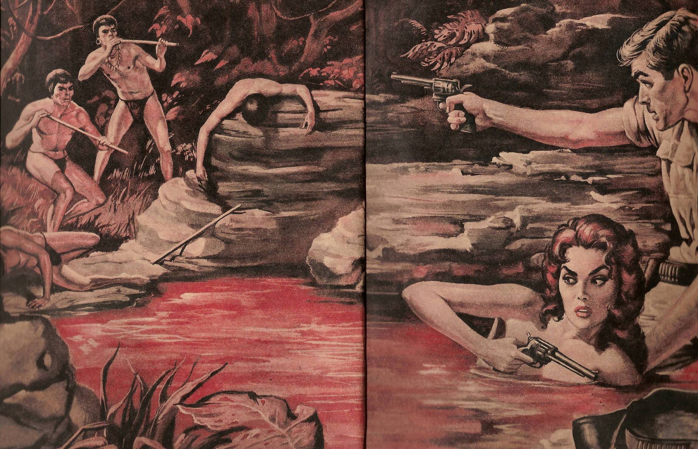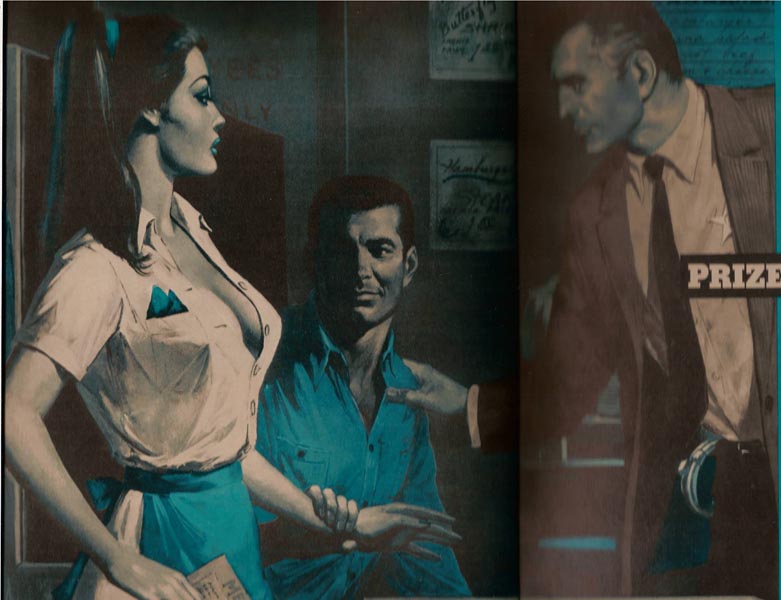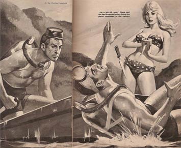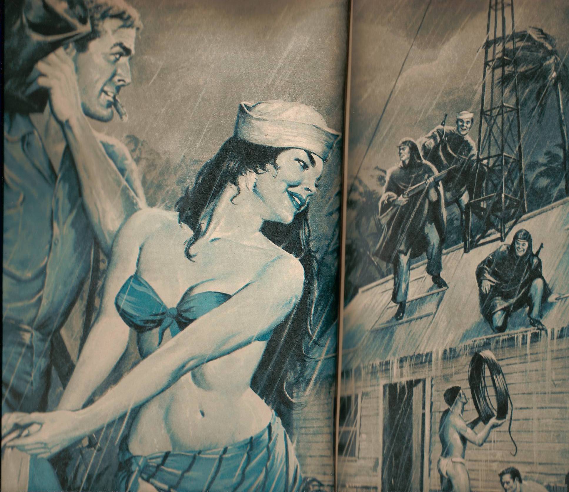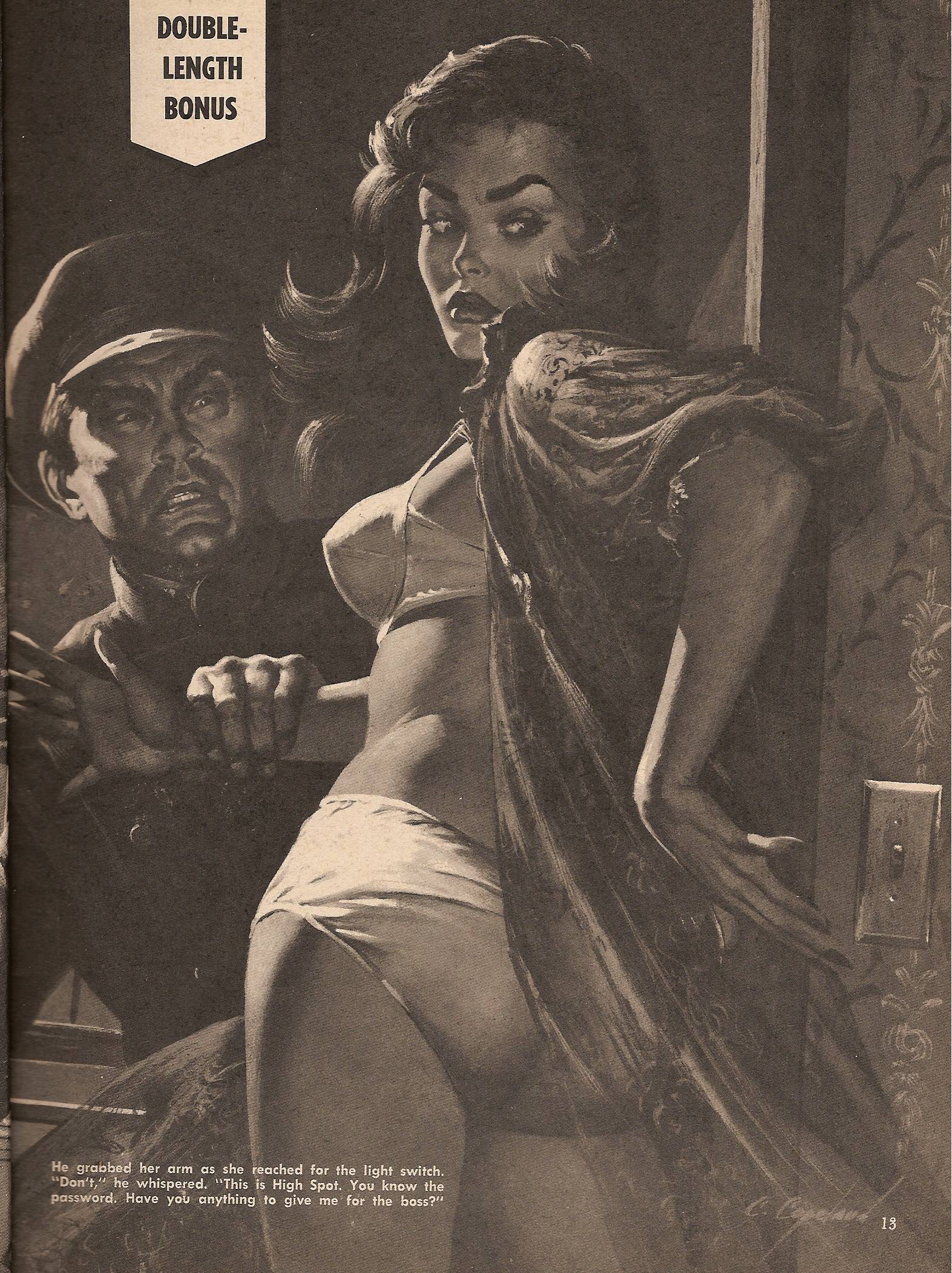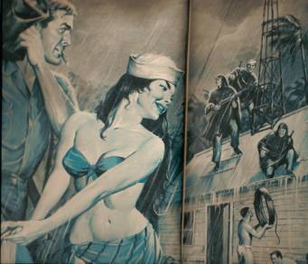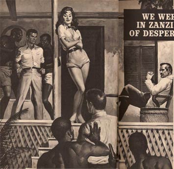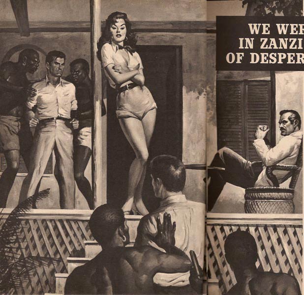 December 1961 - cover & interior "We Were Hunted in Zanzibar's Port of Desperate Nymphs". Interior was reused in SPORTSMAN November 1964. This is the painting that suggested Copeland had to be the uncredited artist of Berkley BG238. |