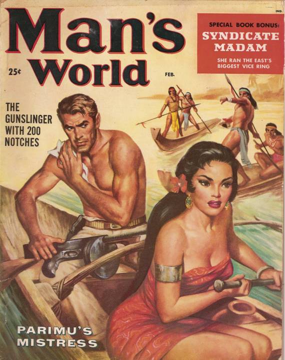 MAN'S WORLD February 1958 - cover. This cover appears in Adam Parfrey's IT'S A MAN'S WORLD: Men's Adventure Magazines, The Postwar Pulps.