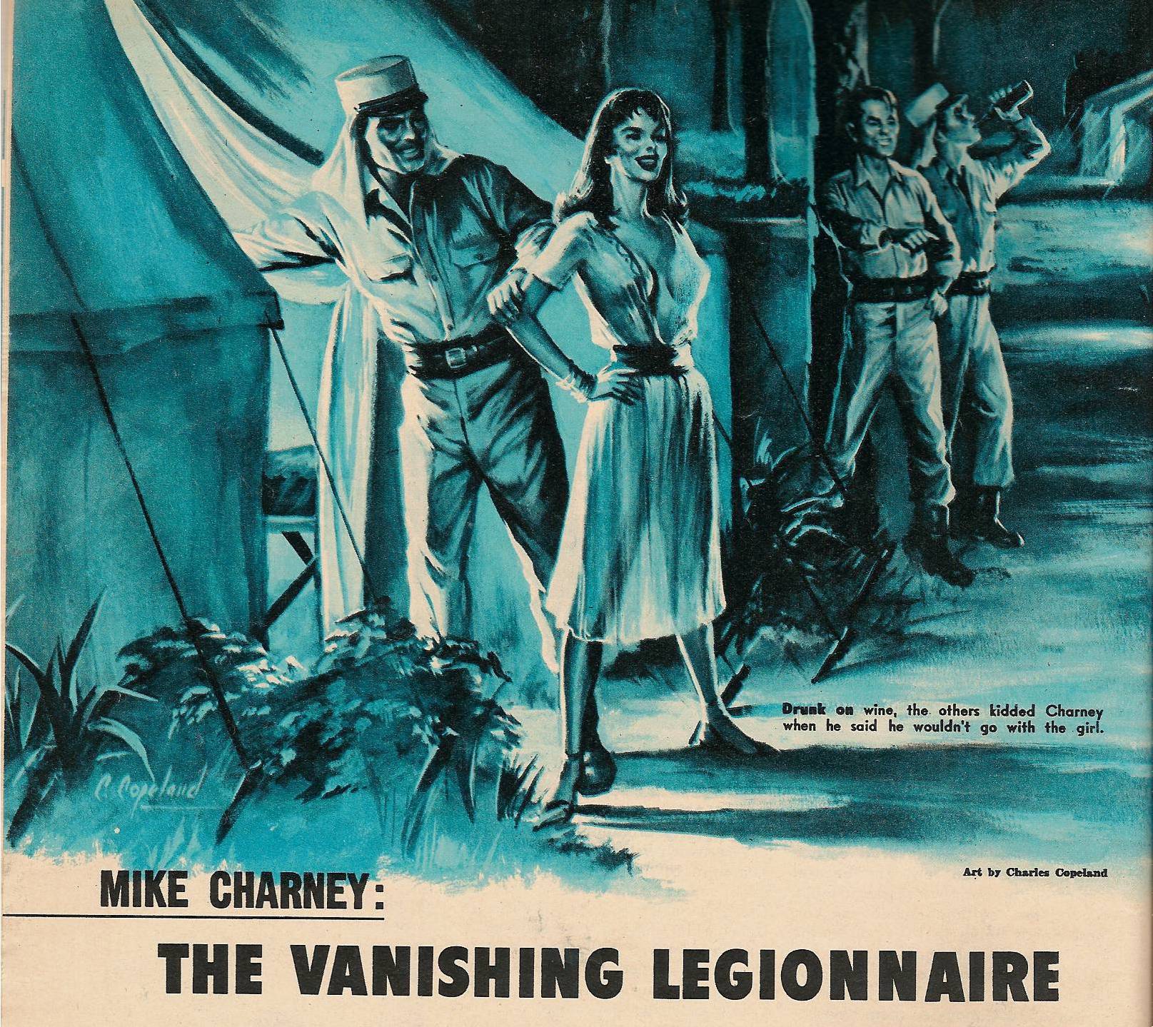 February 1959 - "The Vanishing Legionnaire". Other small illustrations for this article are by an unknown, uncredited artist. |