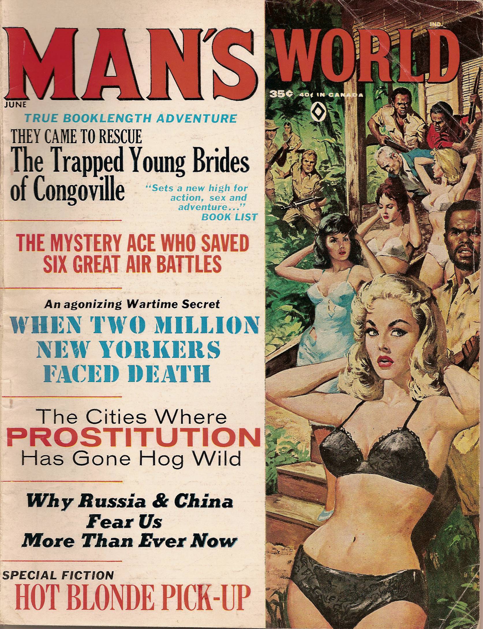 October 1958 - "The Call Girl Who Led a Legion of Rebels". The intro suggests this was written for STAG, perhaps indicating that even early on, MAN'S WORLD was used for overflow, leftovers and reprints from MALE & STAG. |