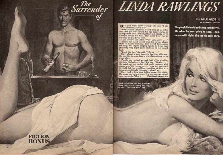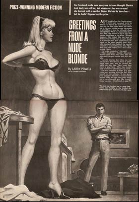 March 1965 - title page & second-page illustrations for "The Blonde From Shack Road" (CLAUDELLE INGLISH) by Erskine Caldwell.