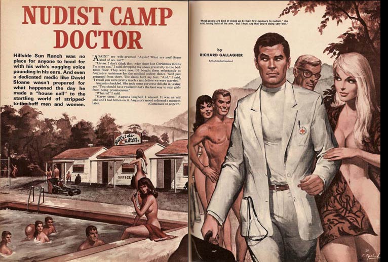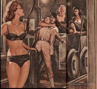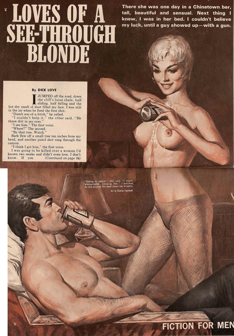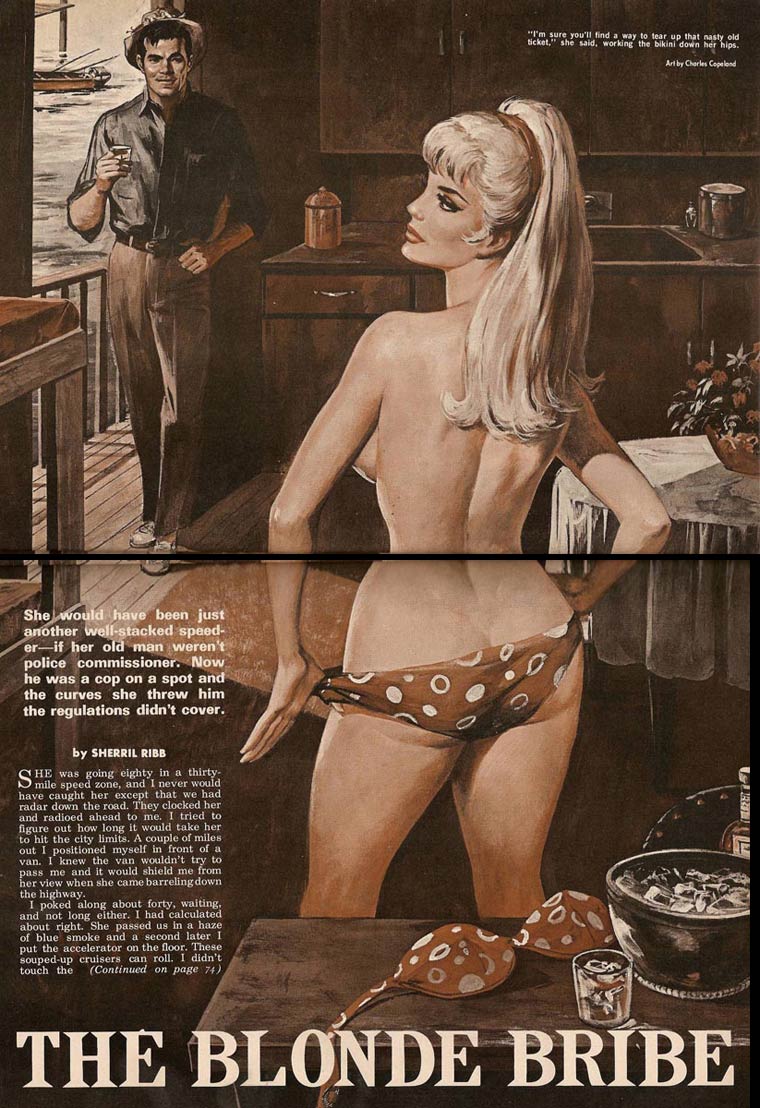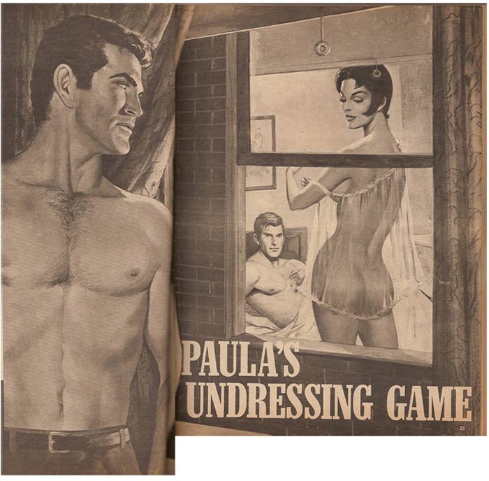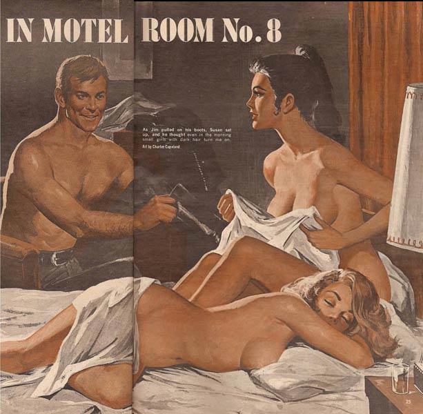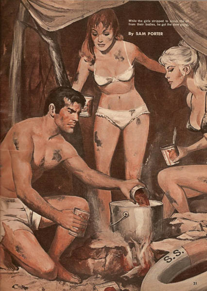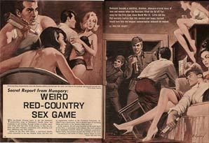 | July 1963 - "Weird Red-Country Sex Game" reused in b&w in FOR MEN ONLY Sept 1965. |