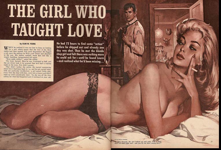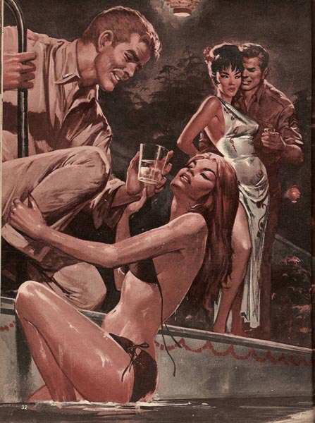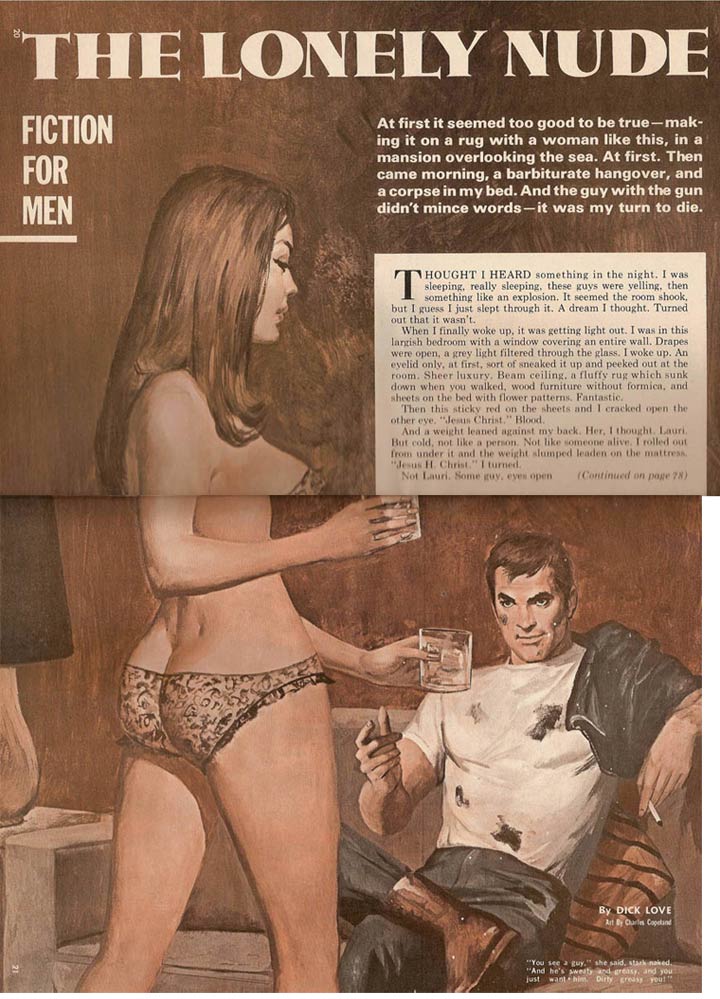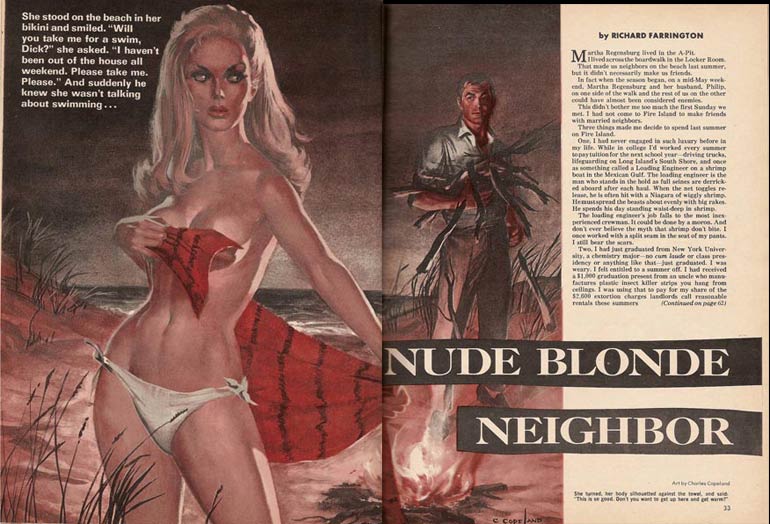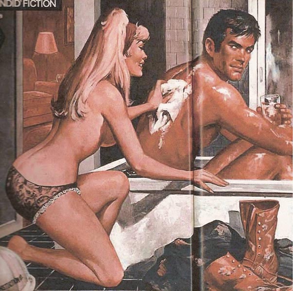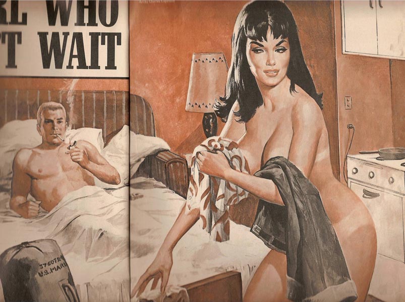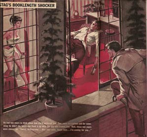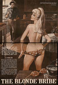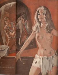 | December 1967 - "Nude Blonde Neighbor". This painting is reprinted in b&w as a second-page illustration in the 1969 STAG ANNUAL. |