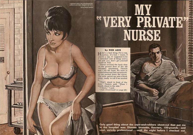 | October 1969 - "My 'Very Private' Nurse" - later reused for the cover of ACTION FOR MEN Sept 1972, with the nurse changed to a blonde doctor. |