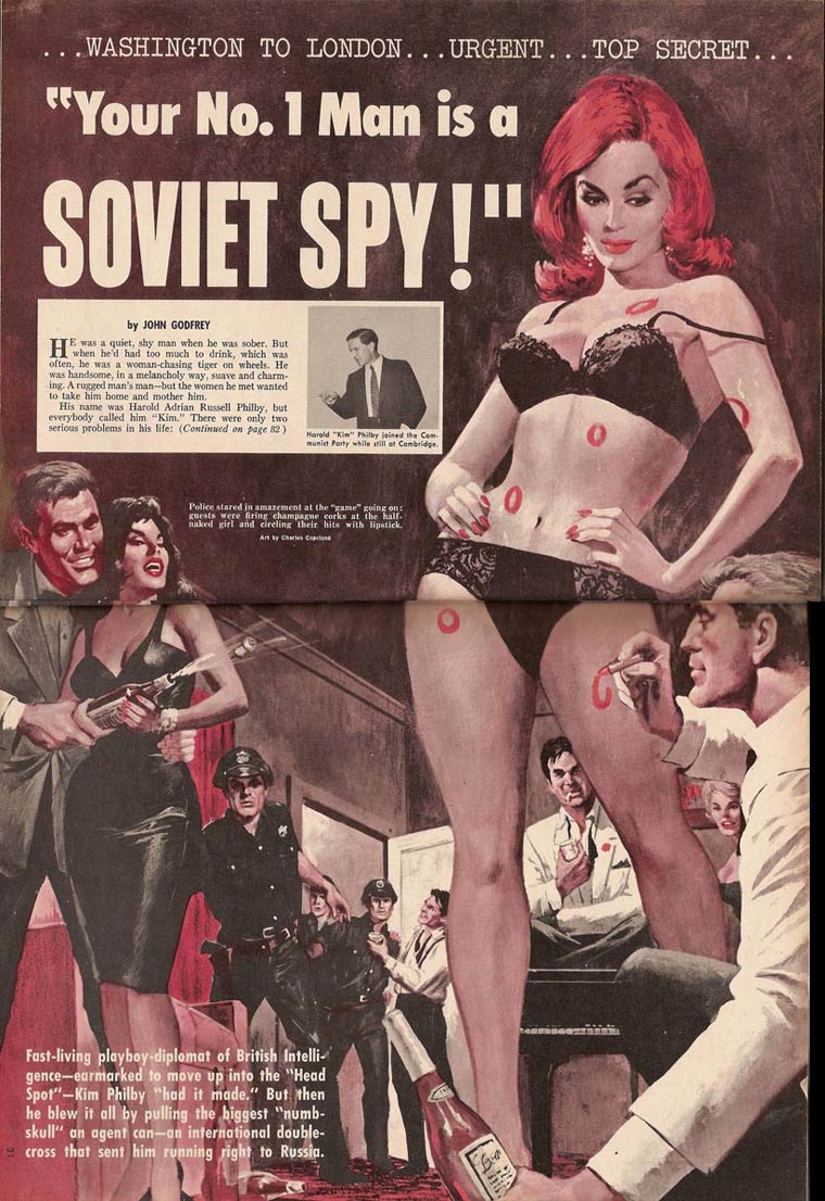 | April 1965 - "Your No. 1 Man is a Soviet Spy!" The story of Kim Philby. Reused in b&w for ACTION FOR MEN March 1967. |