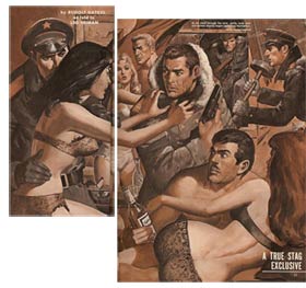 January 1958 - "The Man-Hungry Queen of Brazil's Penal Legion". (There seemed to be a preponderance of man-hungry females in STAG's 1950s stories. With 8 other illustrations throughout the story). |