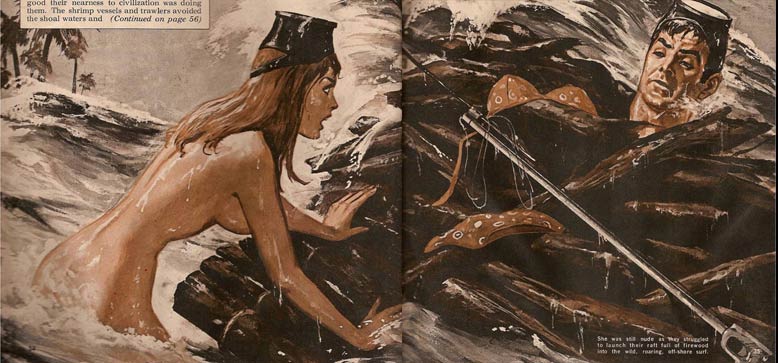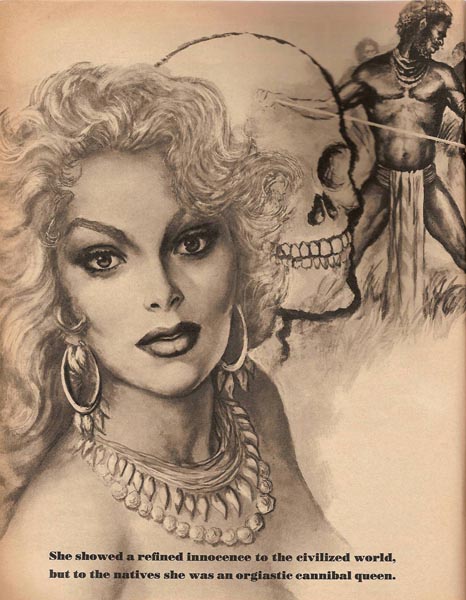 STAG December 1956 - "Man-Hungry Emma Kolbe" detail. The story of a white cannibal queen. I think Emma might have been "man-hungry" in more ways than one. |