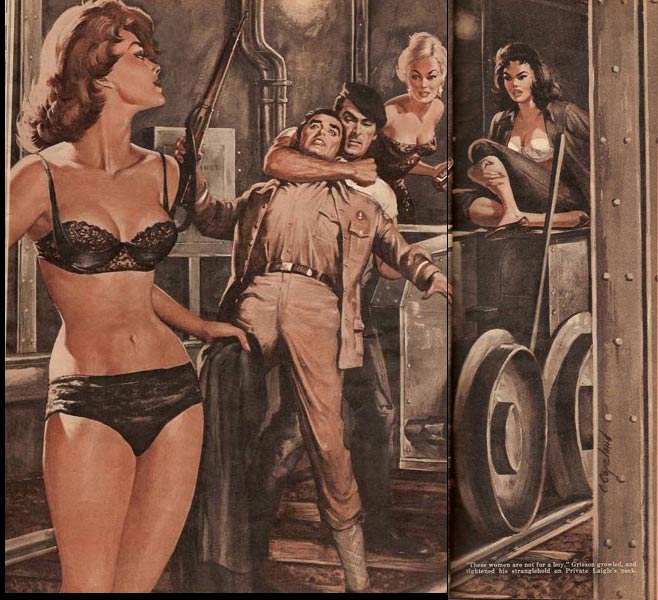 July 1962 - "Troop-Following Comfort Girls" reused in COMPLETE MAN Sept 1965 (not shown) "one of those cuckoo chapters of the Korean War not recorded in official histories".