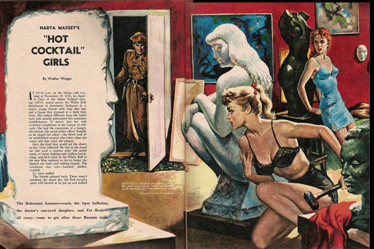 | September 1964 - two reprints with Copeland art: "Behind - the - Curtain Agent Who Kidnaped Russia's Hottest MVD Girl" from MALE Dec 1961 & "Swamp Mistress of an Illicit Diamond Empire" from MALE Nov 1961. |