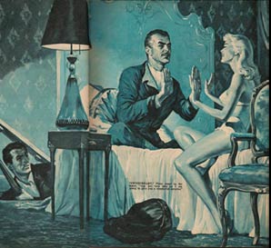 August 1972 - "Bedroom Blonde" reuses art from MALE Sept 1971. Third use: ACTION FOR MEN Sept 1973. |