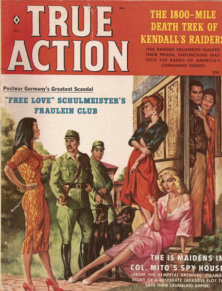 | March 1959 - "Marshal Rommel's Private Belly Girl". As it promised right on the spine, "beautiful color" in these early issues. |